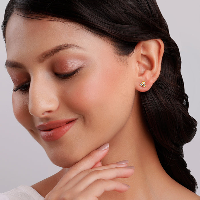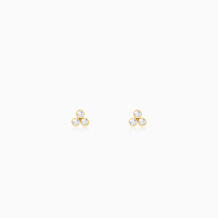 Golden Three-Stoned Stud Earrings